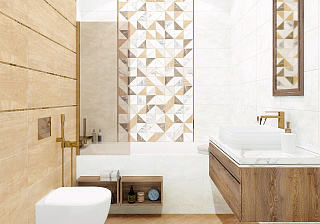 Глянцевая коллекция Triangle представлена в современном стиле и формате 249×500 мм. Имитация дерева благородно смотрится в интерьере. Благодаря сочетанию мрамора и дерева дизайн помещения получится индивидуальным, а декор из треугольников с фактурой мрамора и дерева создаст настроение на каждый день.