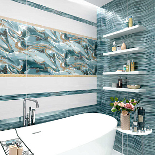 Коллекция керамической плитки Alma Ceramica Tori в интерьере, своей глянцевой и рельефной поверхностью, создаст ауру яркого света. Коллекция включает декорацию с абстрактными, золотыми разводами, дизайн которых предполагает любое количество их использования. Их несколько футуристический вид наполнит пространство загадкой. Эмоциональный сине-зеленый цвет коллекции или плитка серого цвета, любой вариант подарит минуты наслаждения в их окружении.