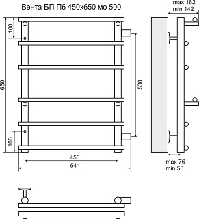 Полотенцесушитель водяной Terminus Вента П6 450х650 бок 500