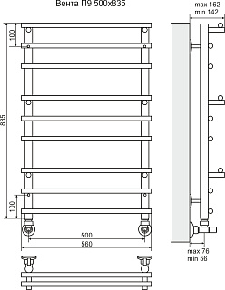 Полотенцесушитель водяной Terminus Вента П9 500x835
