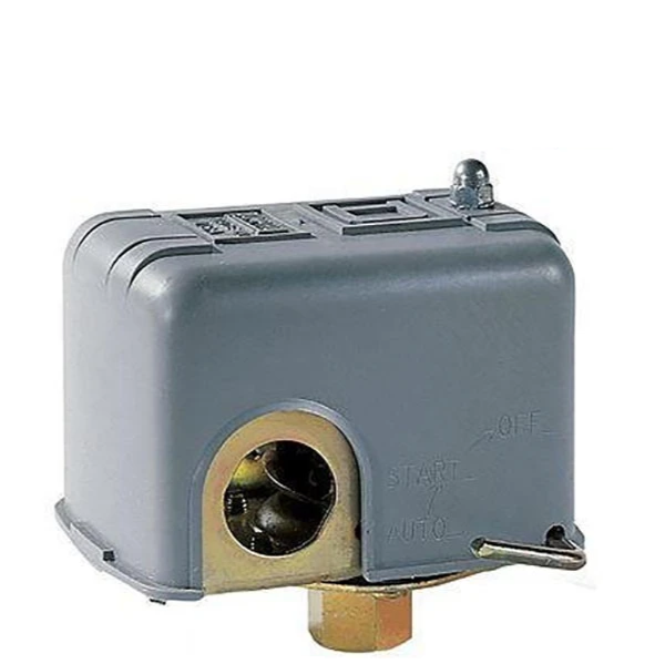 Запуск реле: Реле приводится в действие при помощи рычага, который расположен на правой стороне прибора. Рычаг имеет три положения указанные на корпусе прибора. Положение “AUTO” является нормальным положением для работы насоса, при наличии давления выше 0,4 бар. Положение “OFF” и “AUTO” являются фиксированными, а “START”не фиксированным , поэтому для запуска насоса необходимо: