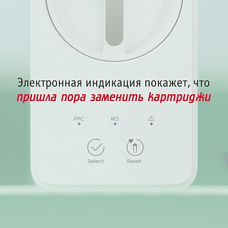 встроенный Smart процессор — управляет всеми режимами работы фильтра: отслеживает оставшийся ресурс, напоминает о необходимости замены картриджей, периодически отправляет команду на промывку мембраны свежей водой;