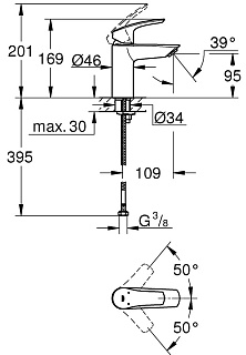 Высота излива, мм: 95
