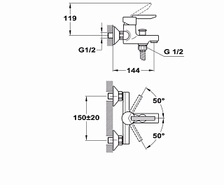 Смеситель для ванны и умывальника TREND PLUS с плоск.изл. S300мм,с душев.набором
