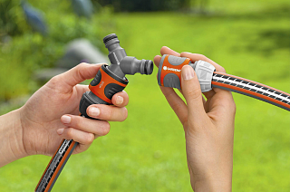 Тройник Gardena 02934-29.000.00 предназначен для соединения одновременно трех шлангов, позволяя таким образом значительно увеличить площадь поливаемой почвы, разделяя линию на две. Выполняет переход со шлангов диаметром 19 мм (3/4") на 13 мм (1/2"). Надежно фиксирует шланги между собой, исключая вылетание. Переходник выполнен из высокопрочного материала, что гарантирует длительный срок эксплуатации.