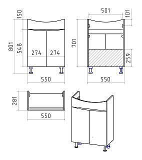 Размер мебели, мм (ШxГxВ): 550x280x700