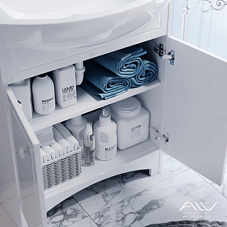 Гарнитур для ванной Classic 60 см станет основой для стильной и презентабельной обстановки, позволив сэкономить на покупке отдельных предметов интерьера. Белоснежный комплект мебели с благородным глянцевым покрытием наполнит помещение аурой чистоты и роскоши, одновременно решая важные практические задачи.
