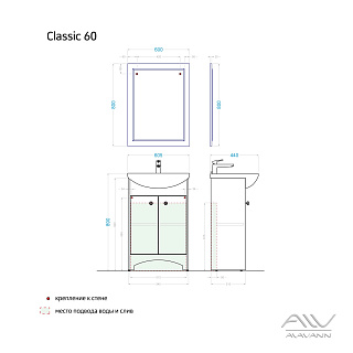 Благодаря компактным размерам и грамотной эргономике, гарнитур с зеркалом не загромождает пространство комнаты и отлично смотрится в локациях любого метража. Каждый элемент мебели для ванной Классик 60 обладает высокой устойчивостью к влажной среде, не восприимчив к перепадам температурных режимов, не выцветает под действием ультрафиолета, надолго сохраняя свой опрятный облик и функциональные качества.