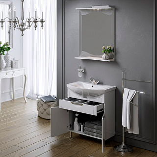 Тумба с раковиной для ванной 80 Monaco - красивый предмет гарнитура для стильной и комфортной жизни. Эргономична, функциональна, без лишних декоративных деталей, отягощающих интерьер. Отличный вариант для оформления ванной в классическом стиле. Комплектуется керамической раковиной Балтика.