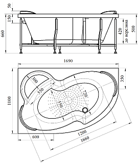 Акриловая ванна "Ирма" 169х110 – хит продаж! Двусторонняя угловая ванна с удобным сиденьем. Она обладает своим особым стилем и характером, поэтому так вам полюбилась.