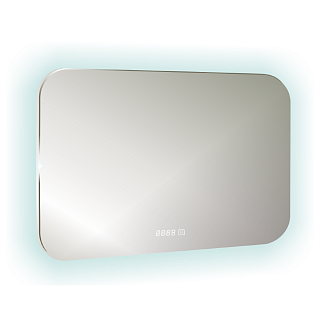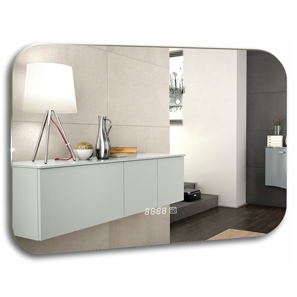 Зеркало для ванной комнаты с LED-подсветкой, сенсорным включателем, диммером, часами и датчиком температуры.