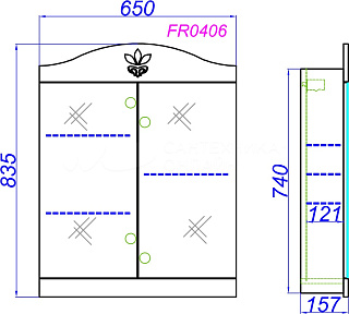 Зеркало-шкаф Aqwella Franchesca – красивая мебель для ценителей функциональных решений в классическом исполнении. Просторный шкафчик шириной 65 см обладает оригинальной конструкцией распашных дверей. Снаружи они образуют единый зеркальный фасад, но в отличие от других подобных моделей дверцы шкафа открываются к центру, создавая две отдельные секции. Петли левой дверцы расположены справа, петли правой дверцы – слева. Подобная конфигурация удобна для раздельного хранения средств гигиены, косметики и медикаментов. Корпус и фрезерованная рама фасада зеркального шкафа производятся из влагостойкой МДФ. Многослойное покрытие эмалью устойчиво к царапинам. Гладкие поверхности зеркального шкафа способствуют легкой чистке от высохших капель воды и других загрязнений.