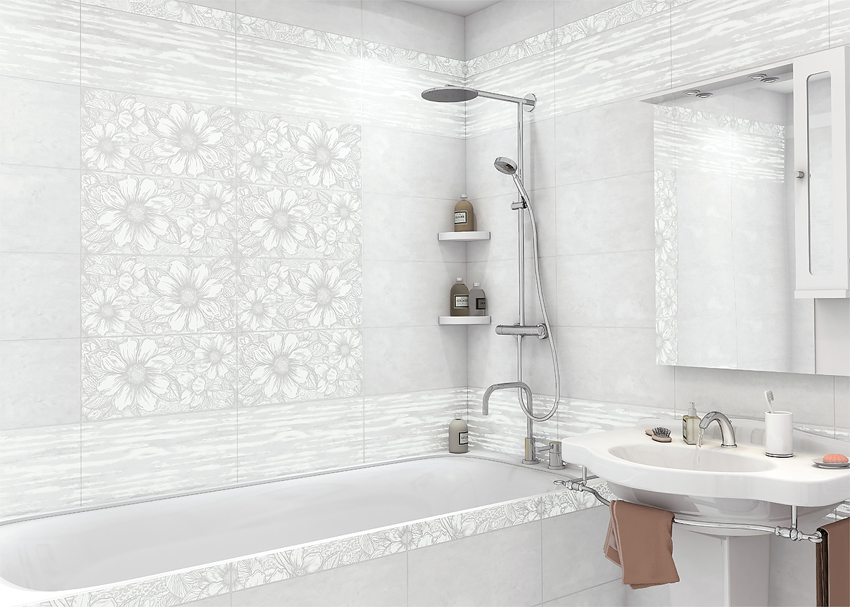 Коллекция Sonata на базе Beton Gray в модном европейском формате 249×500 мм. Белоснежные цветы на контрасте с переливающимися блестками и гладкой светлой бетонной поверхностью создают настоящий романтический лофт. Смело сочетая столь непохожие друг на друга элементы, Sonata создает действительно неповторимый дизайн. Керамогранит для коллекции выпускается в формате 410×410 мм.