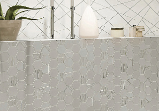 Коллекция Baffin Gray — это сочетание платины с благородной матовой фактурой бетона. Уникальный декор, ассоциирующийся с морозным узором, наполнит помещение легкостью. Коллекция представлена в двух цветовых вариантах Dark и Light и состоит из элементов удобного формата 246×740 мм и оригинальной шестигранной мозаики, которая дополнит интерьер изящным металлическим мерцанием геометрических линий.