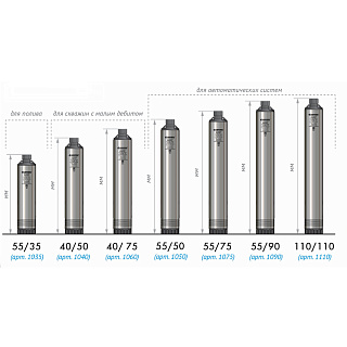 Предназначены для подачи чистой воды из скважин (с внутренним диаметром от 110 мм и более), колодцев, резервуаров и открытых водоемов, орошения сада и огорода. Насос включается и выключается вручную, для автоматизации работы необходимо доукомплектовать его соответствующими аксессуарами.