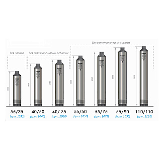 Предлагаемый здесь погружной насос-водомёт продаётся по оптимальной цене, менее 10 тысяч рублей, но при этом отличается надёжностью и неприхотливостью. Насосы этого бренда работают в скважинах с содержанием песка до 150 г/м3. Покупая такой водомётный насос для скважины, обратите внимание на следующие параметры: