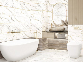 Коллекция Detroit выполнена в тёплой гамме природных материалов белого мрамора и дерева. Акцентный элемент коллекции с текстурой золотой калакатты выполнен на объемном волнообразном рельефе. Базовые плитки с такой же текстурой являются гармоничным компаньоном к плитке с текстурой древесины ясеня. Вместе они создадут индивидуальный дизайн в современном стиле. Коллекция произведена в формате 249×500 мм, с глянцевой поверхностью, комплектуется керамическим бордюром в золотом цвете 13×500 мм и коллекционным лаппатированным керамогранитом 600×600 мм.