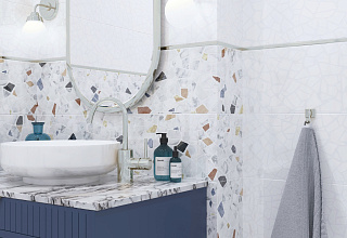 Дизайнеры бренда AltaCera при создании коллекции Smalta вдохновлялись венецианским терраццо и разноцветными витражами из смальты, получив поистине эксклюзивный дизайн. В серии представлены три вида глянцевых плиток с рельефной текстурой: белая, бело-серая и цветная. Микс ярких фрагментов на светлой основе освежит интерьер и сделает его жизнерадостным.