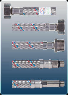 Оплетка из высококачественной нержавеющей стали 301 состоит из 7 нитей, толщиной 0,18 мм каждая. Оплетка с вкраплениями красных и синих нейлоновых нитей, характеризующих горячее и холодное водоснабжение.