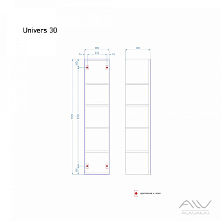 Навесной шкаф пенал Univers (размер 30 см) покрыт белой глянцевой эмалью, которая предотвращает негативное воздействие влажной атмосферы в ванной комнате. Гармонично вписывается в любую обстановку современных небольших помещений.