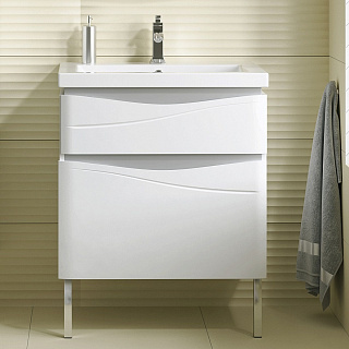 Напольная тумба с раковиной Сильвия 70 (цвет – белый + серебристый металлик) изготовлена  из высококачественных влагостойких материалов. Несмотря на перепады температур и высокую влажность в ванной, это изделие гарантированно прослужит Вам долгие годы.