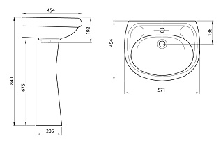 Размеры умывальника: 571x454x188 мм
