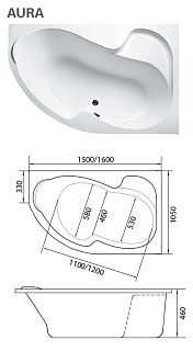 Асимметричная ванна AURA выгодно выделяется на фоне доступных альтернатив строгостью и плавностью линий в сочетании с оригинальной формой. Каталог MARKA обеспечивает доступные цены для желающих купить элегантную акриловую ванну Аура. Размеры модели составляют 160x105 см. Акриловая ванна с гидромассажем выполнена в компактных размерах, что позволяет ей выгодно дополнять интерьер комнаты, при этом сохраняется большой внутренний объем со сливом-переливом, смещенным к середине для удобства. Конструкция акриловой ванны AURA может быть оснащена комфортным сиденьем, подголовником и другими опциями.